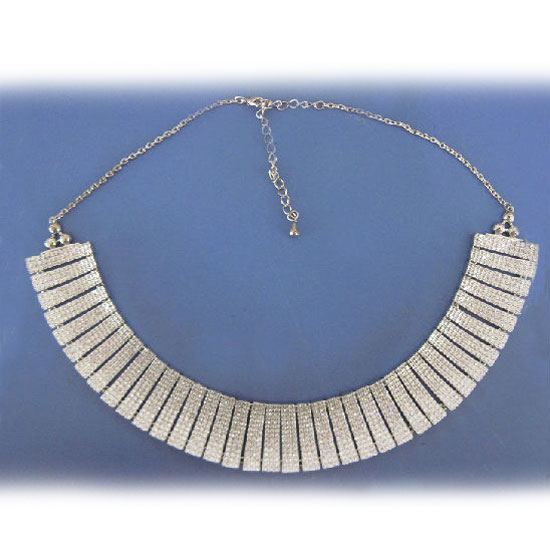 This absolutely gorgeous necklace flaunts timeless beauty. The flamboyant design with numerous shimmering cubic zirconia stones is truly breathtaking. It matches particularly well with a strapless bridal gown.