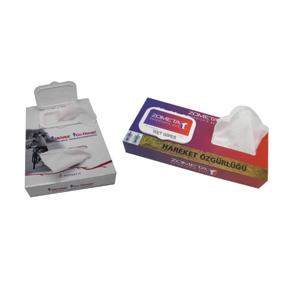 These are boxes for wet wipes with logos printed. Logos of your company can be freely printed on the boxes in order to achieve the promotional purpose. As a gift item for your customers, the boxes can help keep your clients clean, while promoting your company.