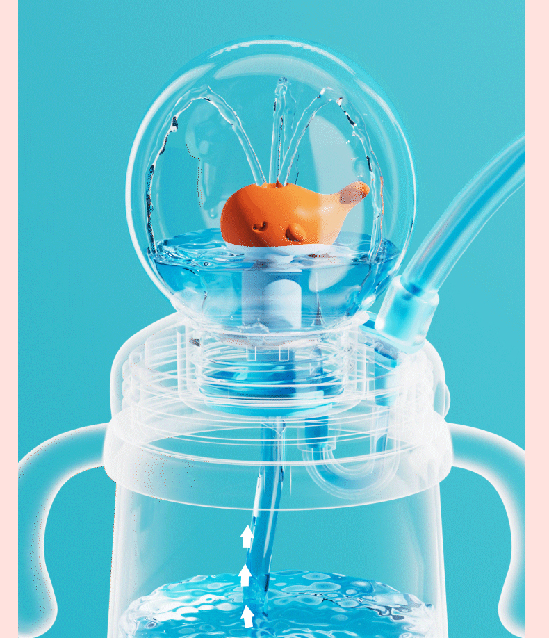 Straw-Activated Design: The harder the child sips, the more dynamic the water flow, creating a playful cause-and-effect relationship that motivates repeated use.
