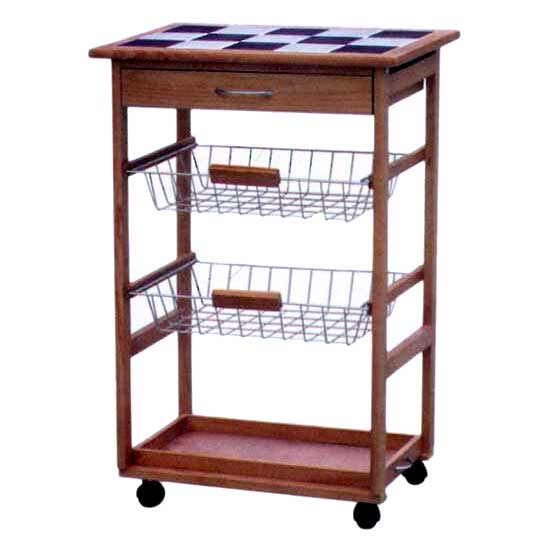 The stylish multi-tier rack features 2 baskets and a drawer. It is equipped with 4 casters for easy moving. This wheeled rack is great for organizing foodstuffs and household items in the kitchen.