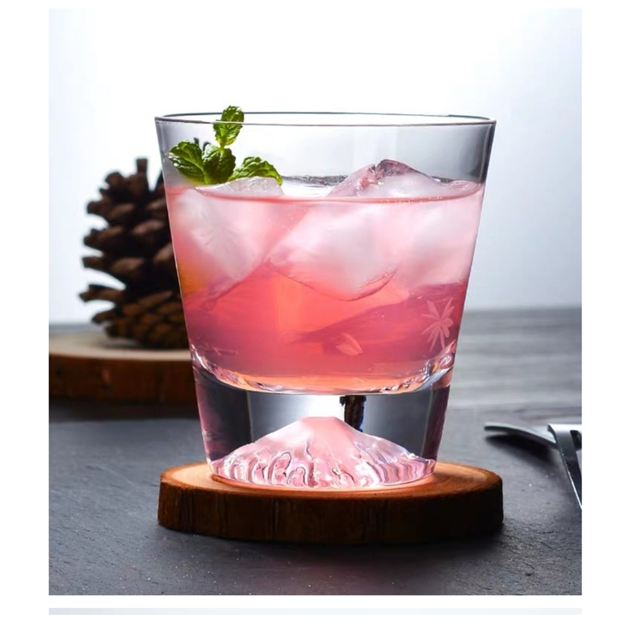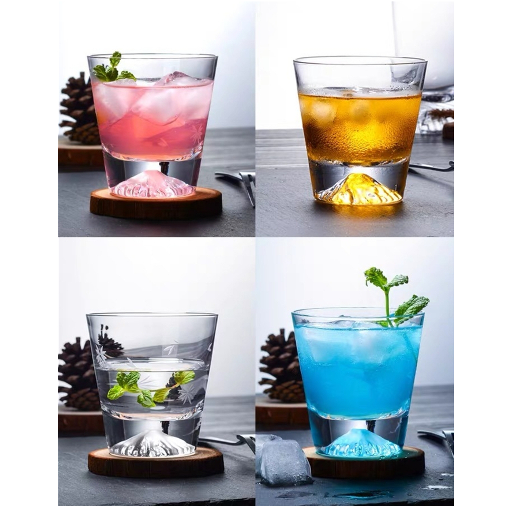 Whiskey Glass with Mountain Base, Crystal Whiskey Glasses, Old Fashioned Lowball Bar Tumblers for Drinking Bourbon, Scotch Whisky, Cocktails, Cognac