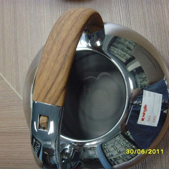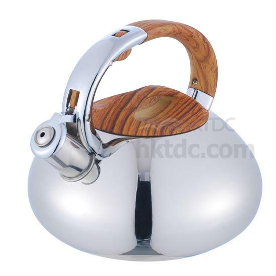 Presented here is a whistling kettle which is suitable for every household. With mirror polish on the body and wooden lid and handle, this trendy kettle makes a perfect match for modern families. The whistling alarm function brings great convenience and safety.