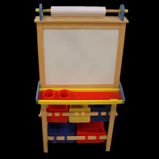The white board is designed for kids to create art with paint, chalk, crayons and more. It is easy to clean with space-saving design. The white board provides hours of creative activity that is both educational and enjoyable.