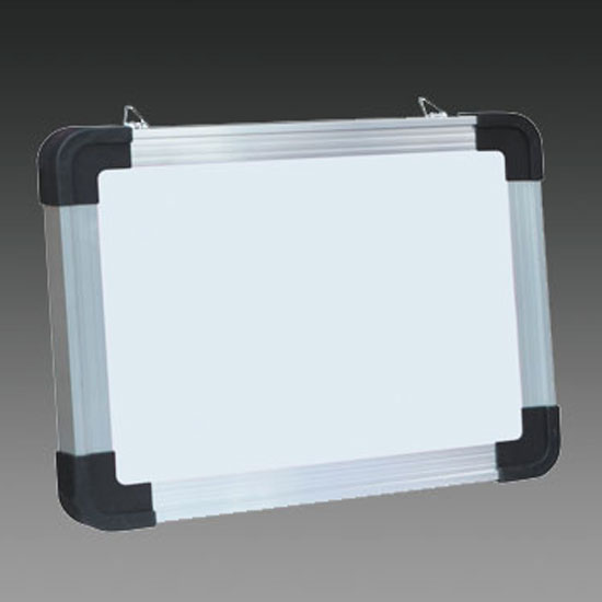 This is a white board in a simple rectangular shape. It features a silvery aluminum alloy frame with black corners. This strong and durable writing board promises an extended service life.