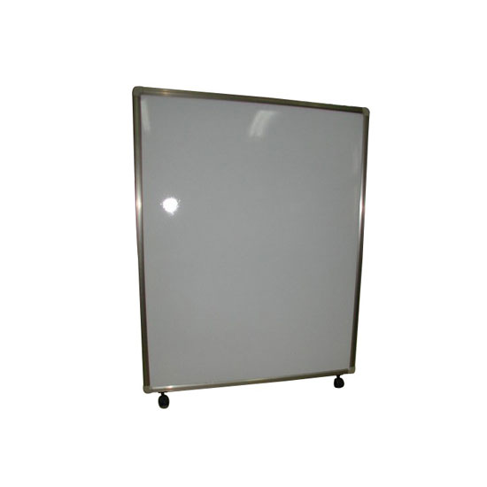 This large whiteboard comes with two wheels for moving convenience. The great size and rectangular shape are ideal for teaching or meeting purposes. Finely made with a robust metallic frame, this whiteboard offers a long service life.