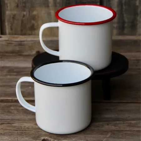 • 【CRAFTED】Fine and bright enamel coating prevent cup rusting, Rolled black rim with no burrs, Wide U-handle for grasp comfortably and hang easily, Strong construction with proper weight