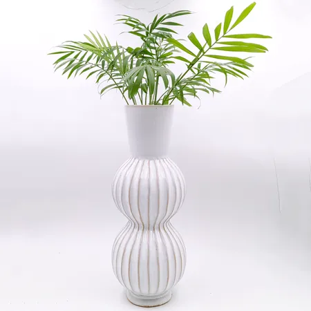 White Ceramic Double-Gourd Tall Floor Vase for Home Decoration
