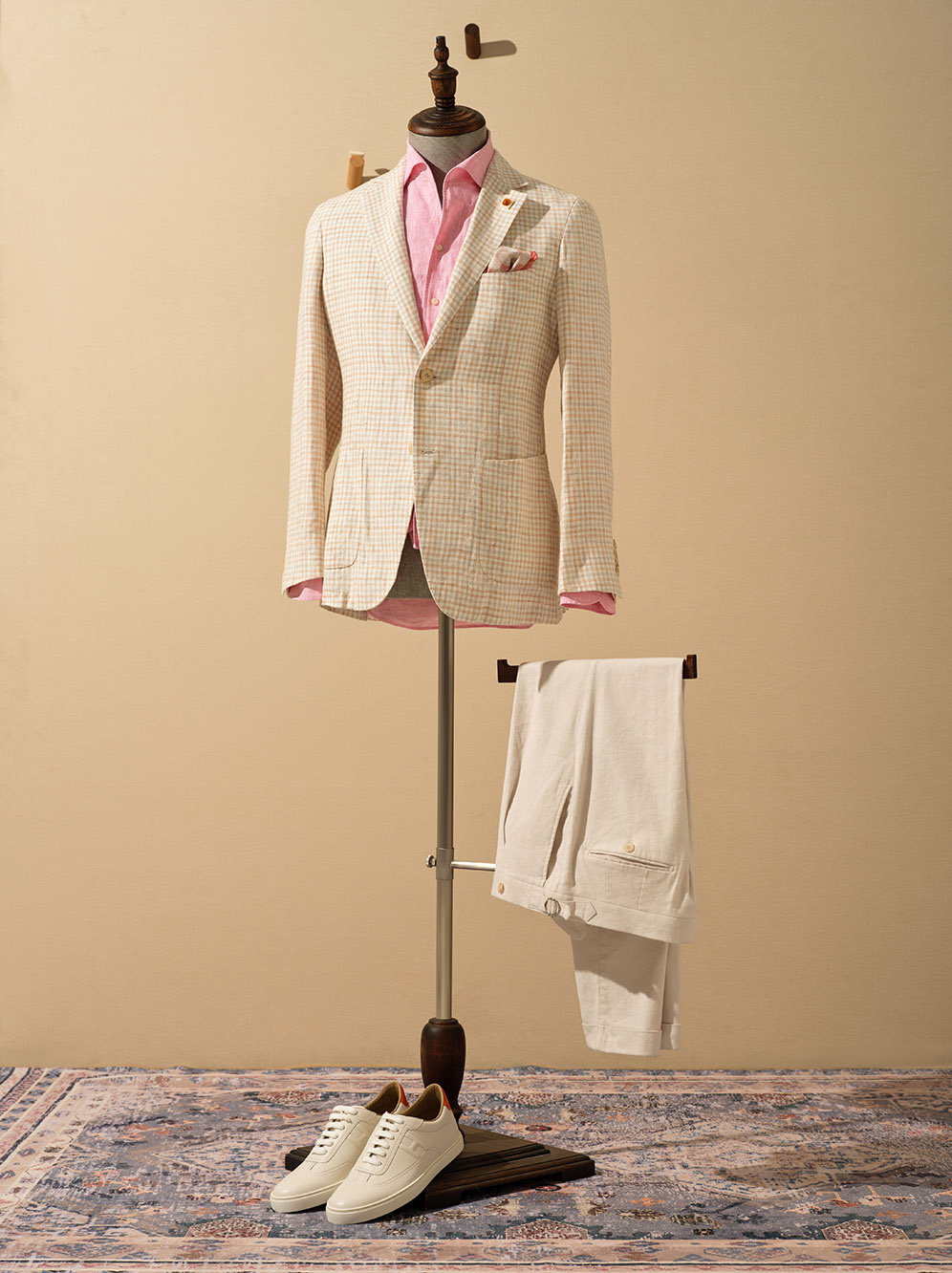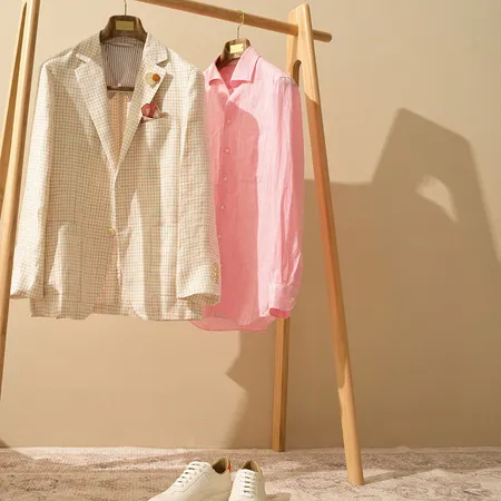 This white checkered blazer features a striking Glen check pattern in a subtle, versatile color scheme, creating a refined and elegant allure.