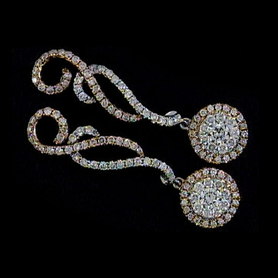 Highlighted here are earrings set with 138 white diamonds weighing 1.46 carats. The 18K white and rose gold combinations showcase a sense of brilliance. The white diamond earrings go well with elegant look.