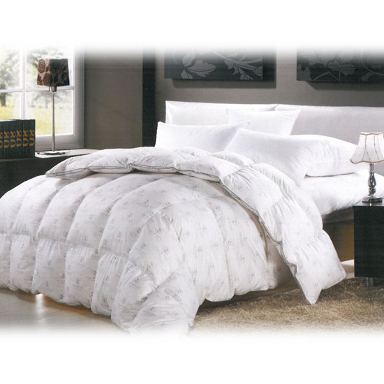 This cotton fabric quilt is filled with 95% white duck down for maximum comfort and warmth. It is designed with delicate patterns for a touch of style. This white duck down filled quilt is a great choice for your household.