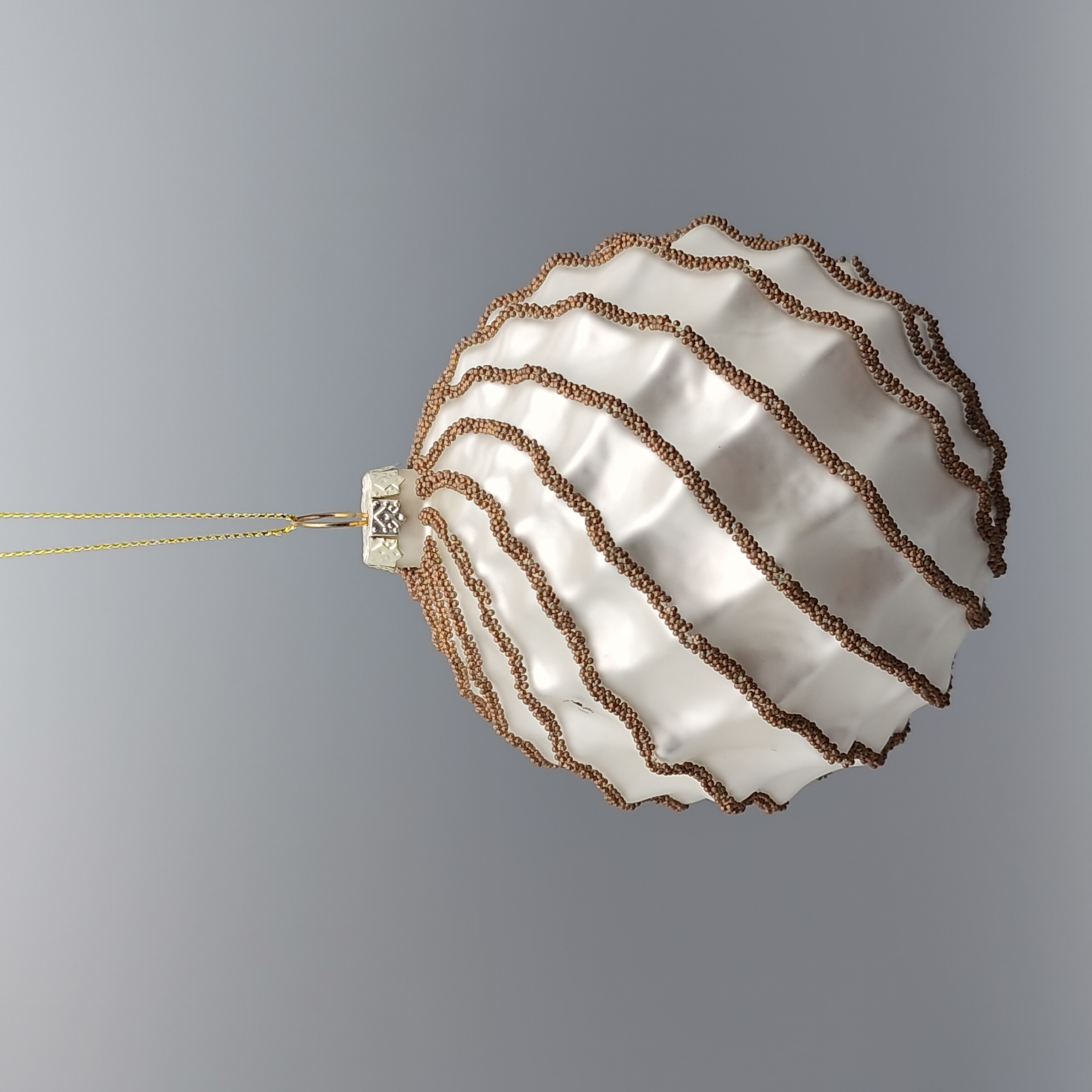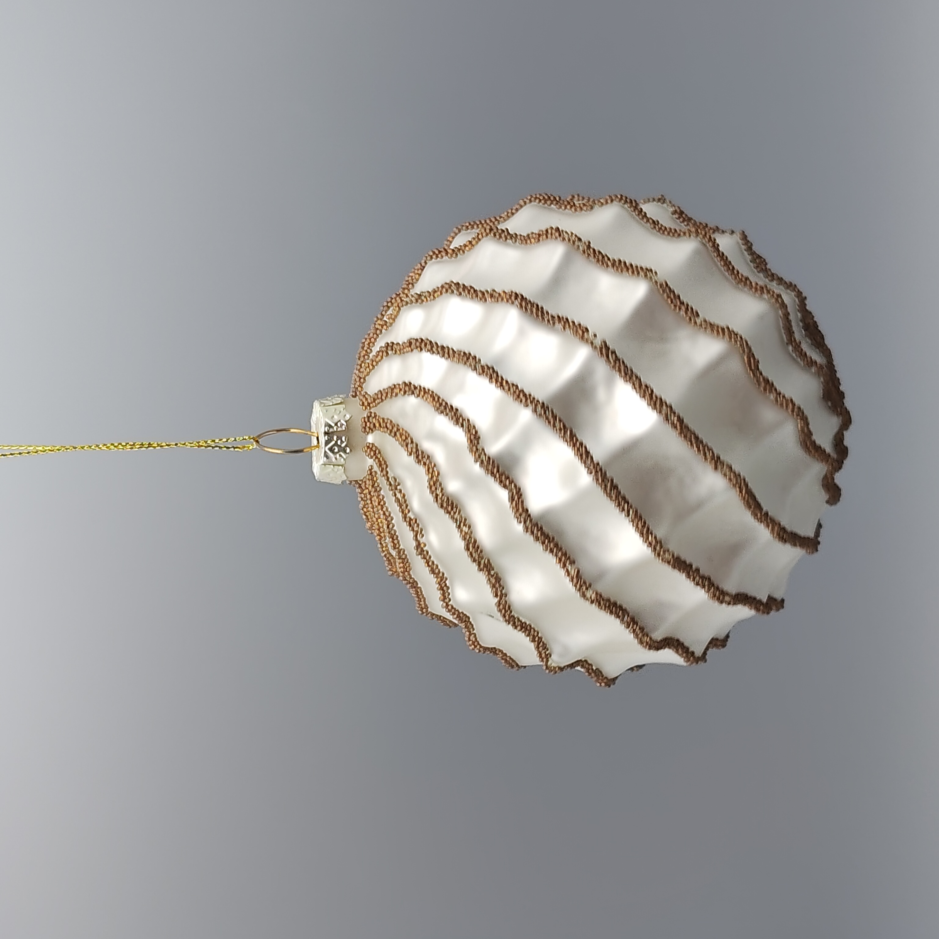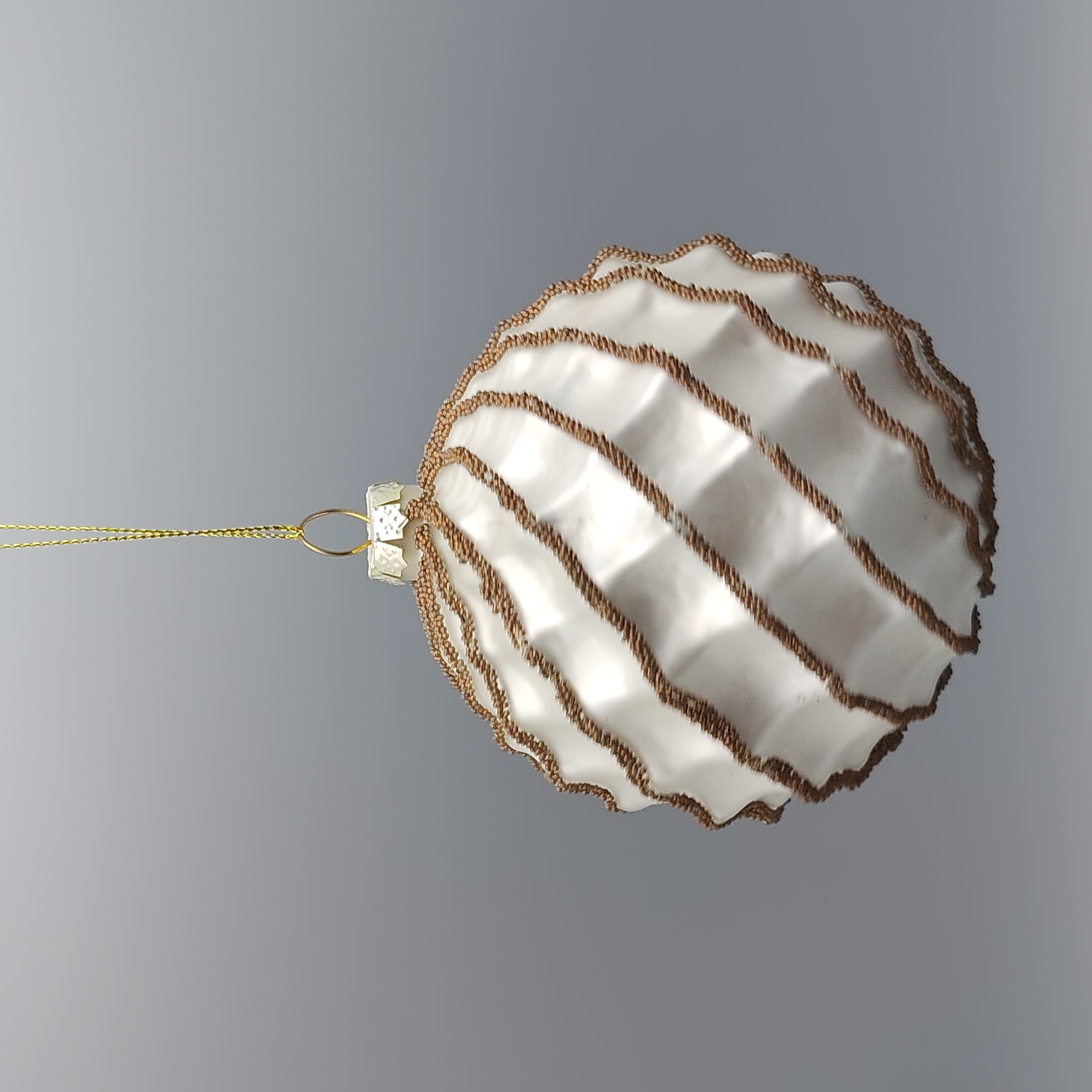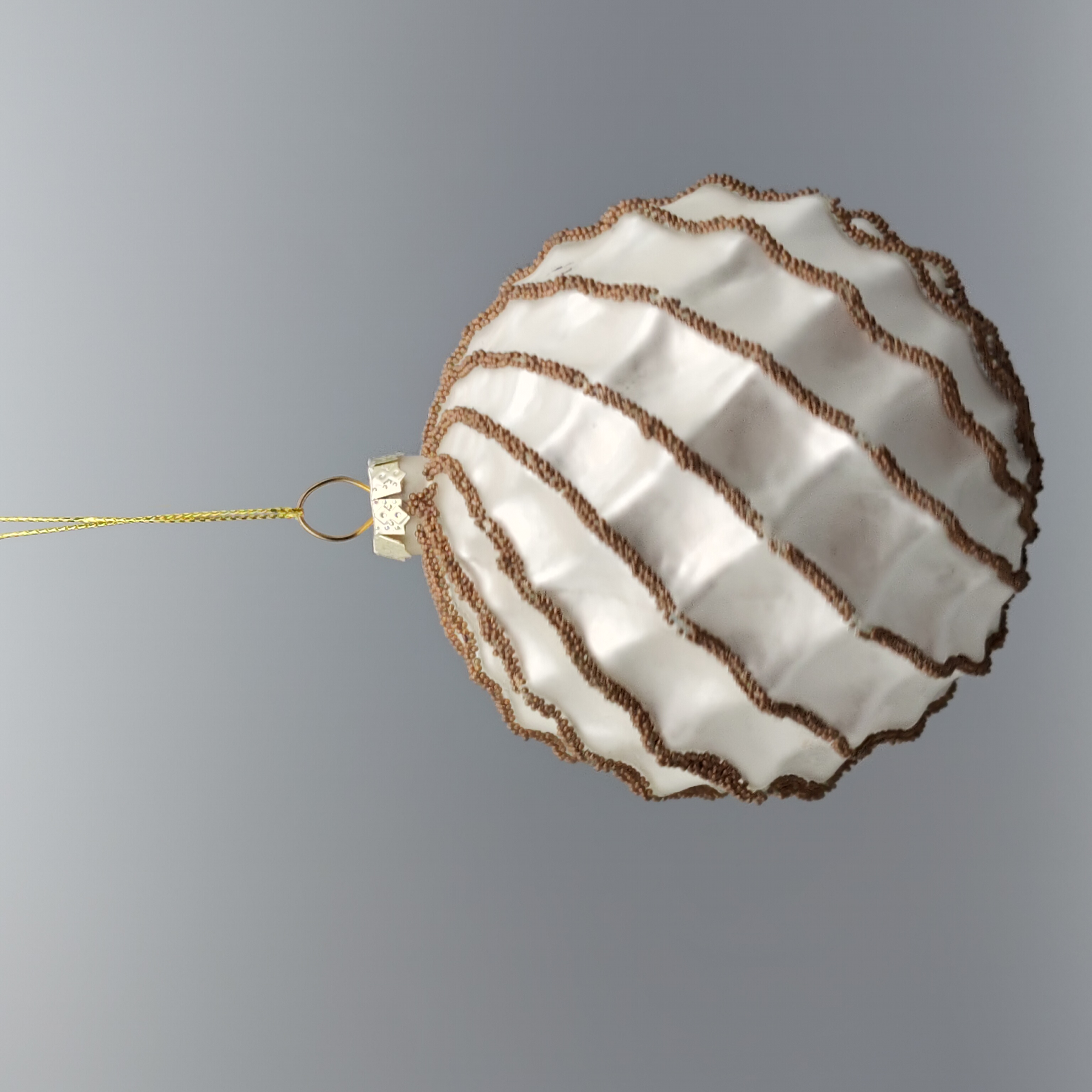 • Item Name: White Glass Christmas Ball Ornament with Gold Glitter Swirls Tree Decorative Accessory