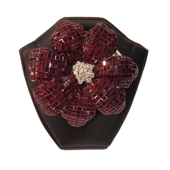 This fancy flower brooch features a delightful pave setting design. The use of mini rectangular gemstones adds a subtle sparkling touch to this brooch. The delicate craftsmanship and contemporary design fascinate onlookers.