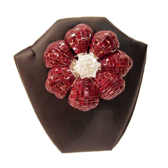 This fancy flower brooch is intricately crafted in diamonds and colored gemstones. The pave setting gives this brooch a distinctive, glamorous look. This extraordinary brooch blends sweetness and sophistication into one.