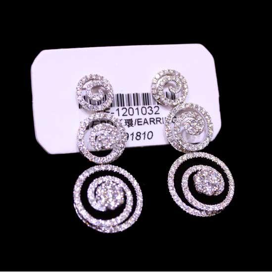Each of these fancy earrings feature three swirl-design charms in gradient sizes. The earrings are finely crafted of 18K white gold with twinkling white stone accents. These delicate earrings are perfect to accessorize your daily look.