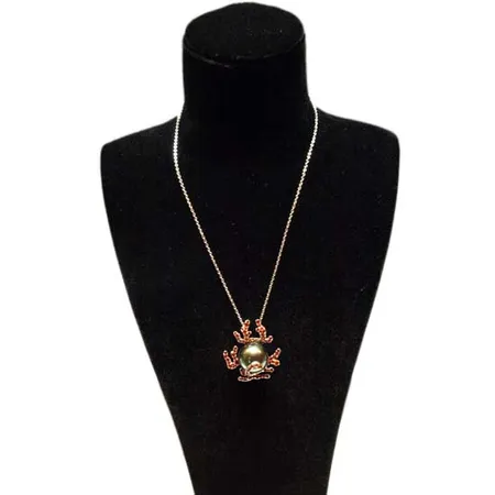 This is a delicately crafted white gold necklace. The pendant features a white gold frame set with a polished pearl and rubies, adding a sense of endless elegance. This stunning white gold necklace makes a great gift idea for fashionable ladies.