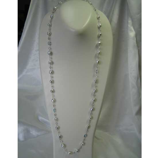 This is a white gold necklace featuring a chain of South Sea pearls to add stylishness. The white pearl is in a good concert with the dazzling white gold chain. Enhance your evening dress in style simply with this gold necklace.