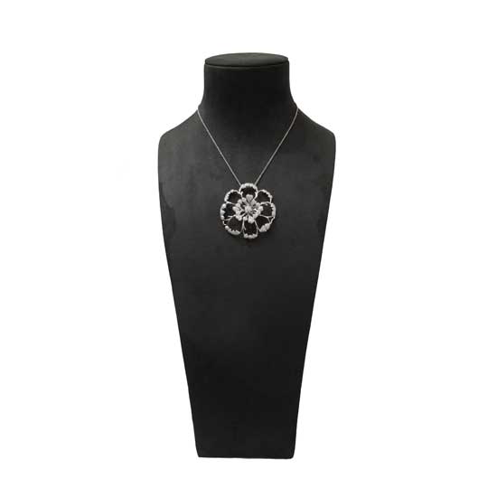 This necklace comes with a big flower-shaped pendant with a hollowed design. It is made of 18K white gold with diamond elements. Add a touch of elegance to your look with this dainty necklace.