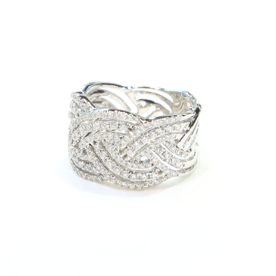 This elegant finger ring is made of white gold and shimmers with a highly glossy finish. This white gold jewelry boasts a simple yet elegant appearance. The allover dazzling diamonds add a touch of luxuriousness to the whole piece.