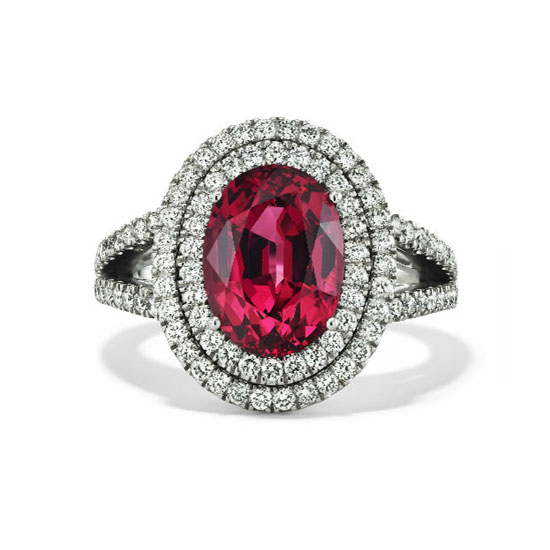 - 18ct white gold ring set with a spinel center stone and diamonds.