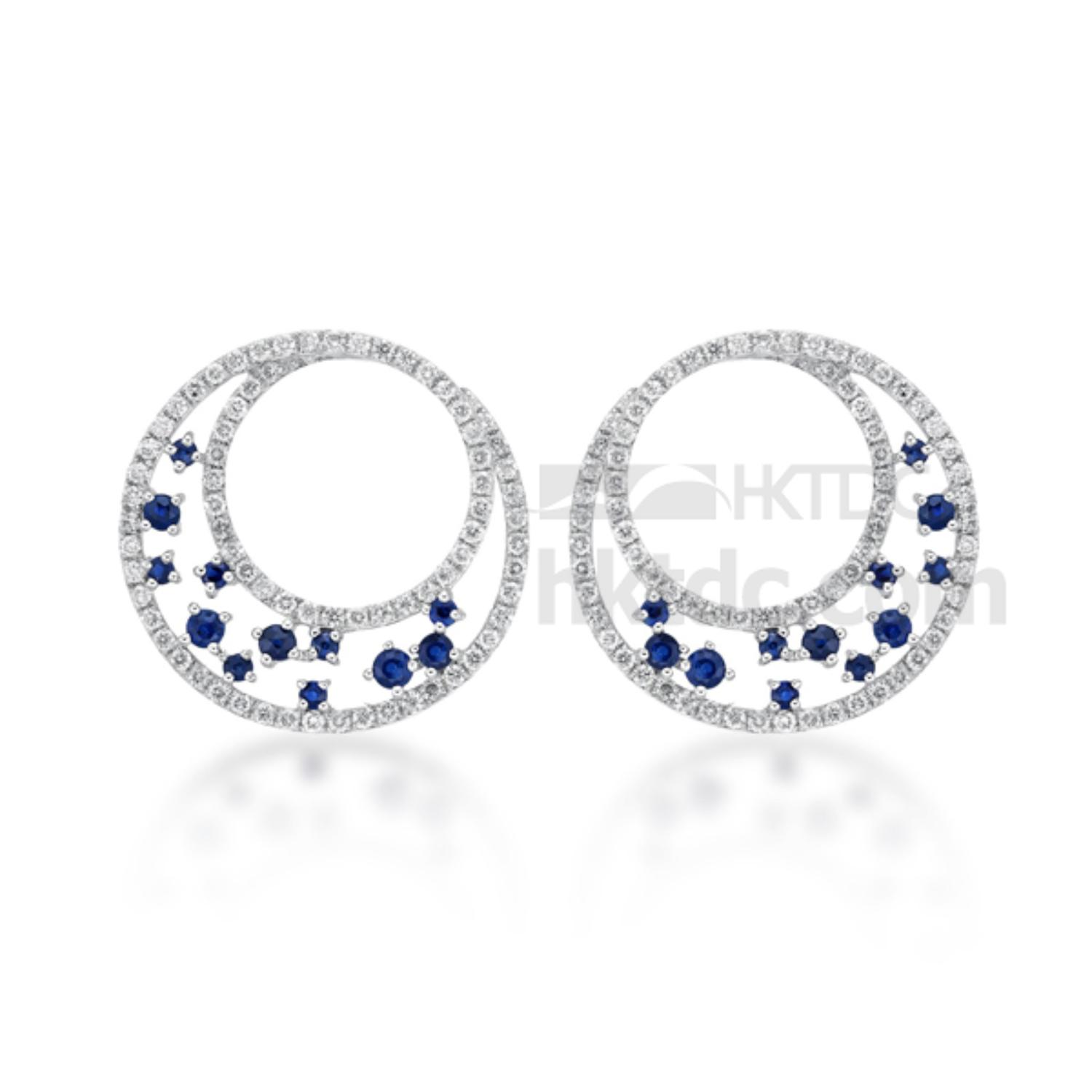 14 Karat White Gold half-moon hoop-stud earrings with blue Sapphire & white Diamond