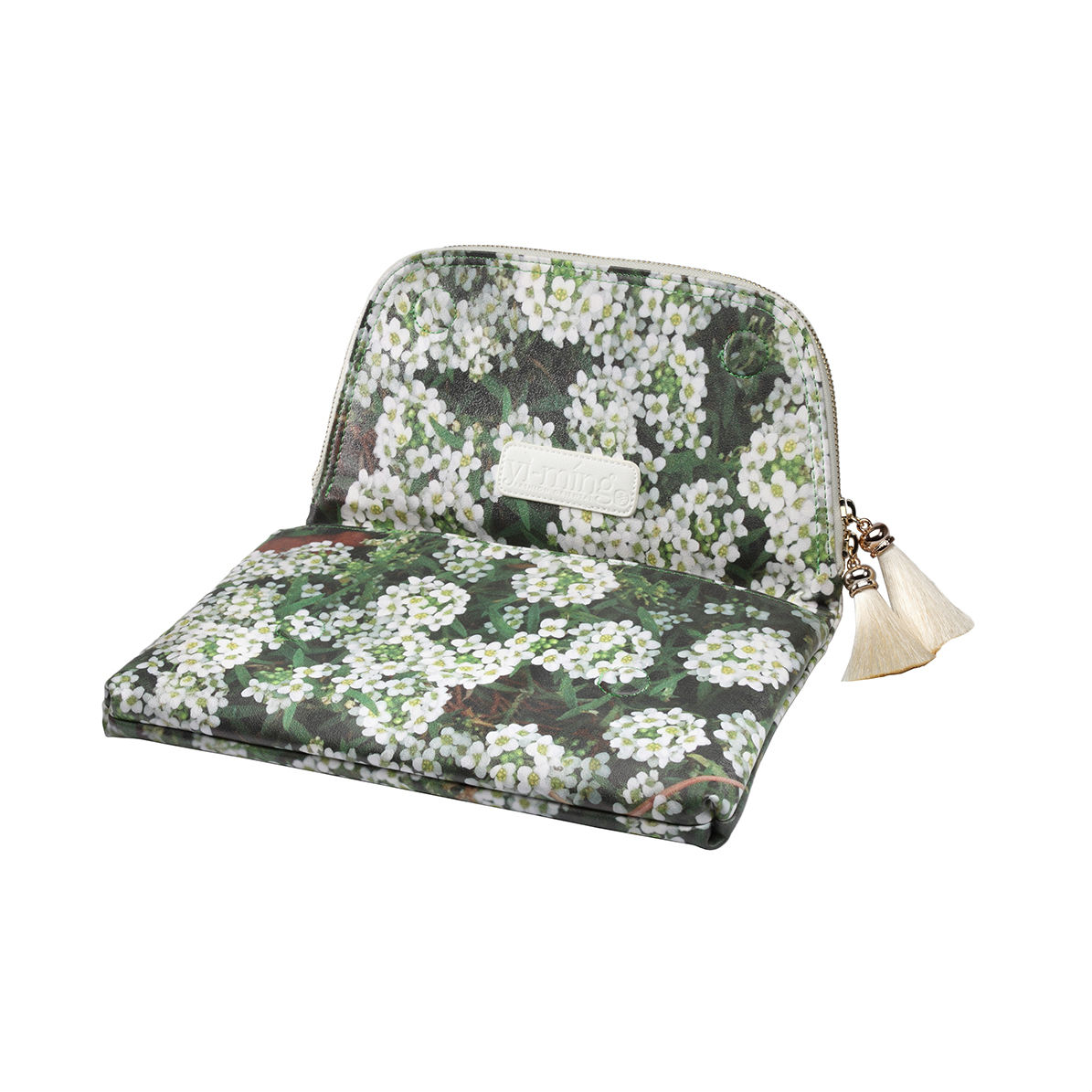White Lobularia & Green Leaves Print Pattern with Beige Tassels