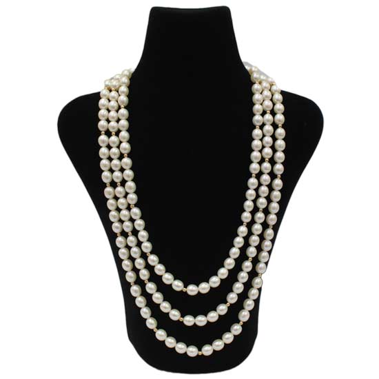 This necklace comes in a long strand to create a multi-strand style. Every pearl on this necklace is in a natural rice shape. Shiny gold beads are added to showcase a classy style.