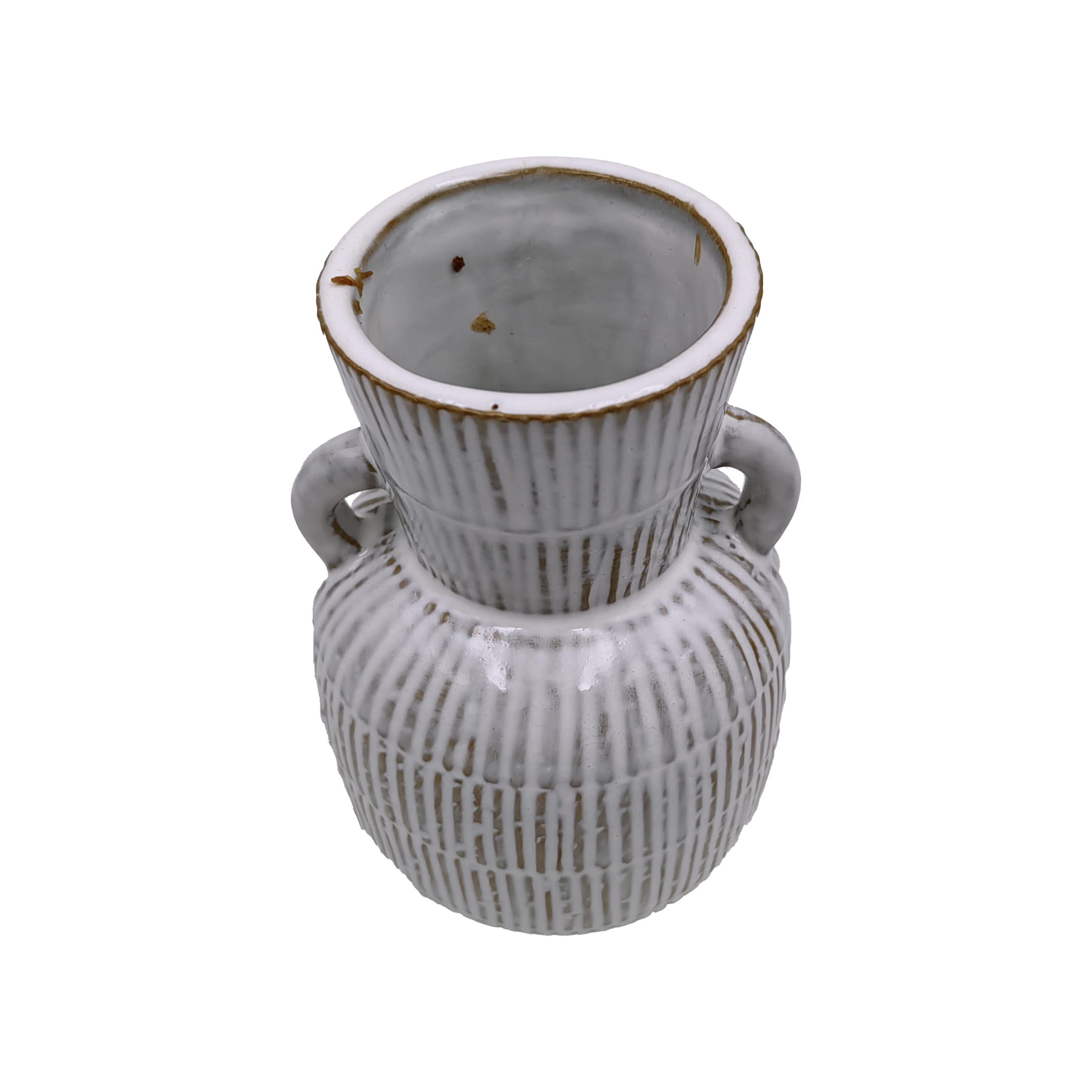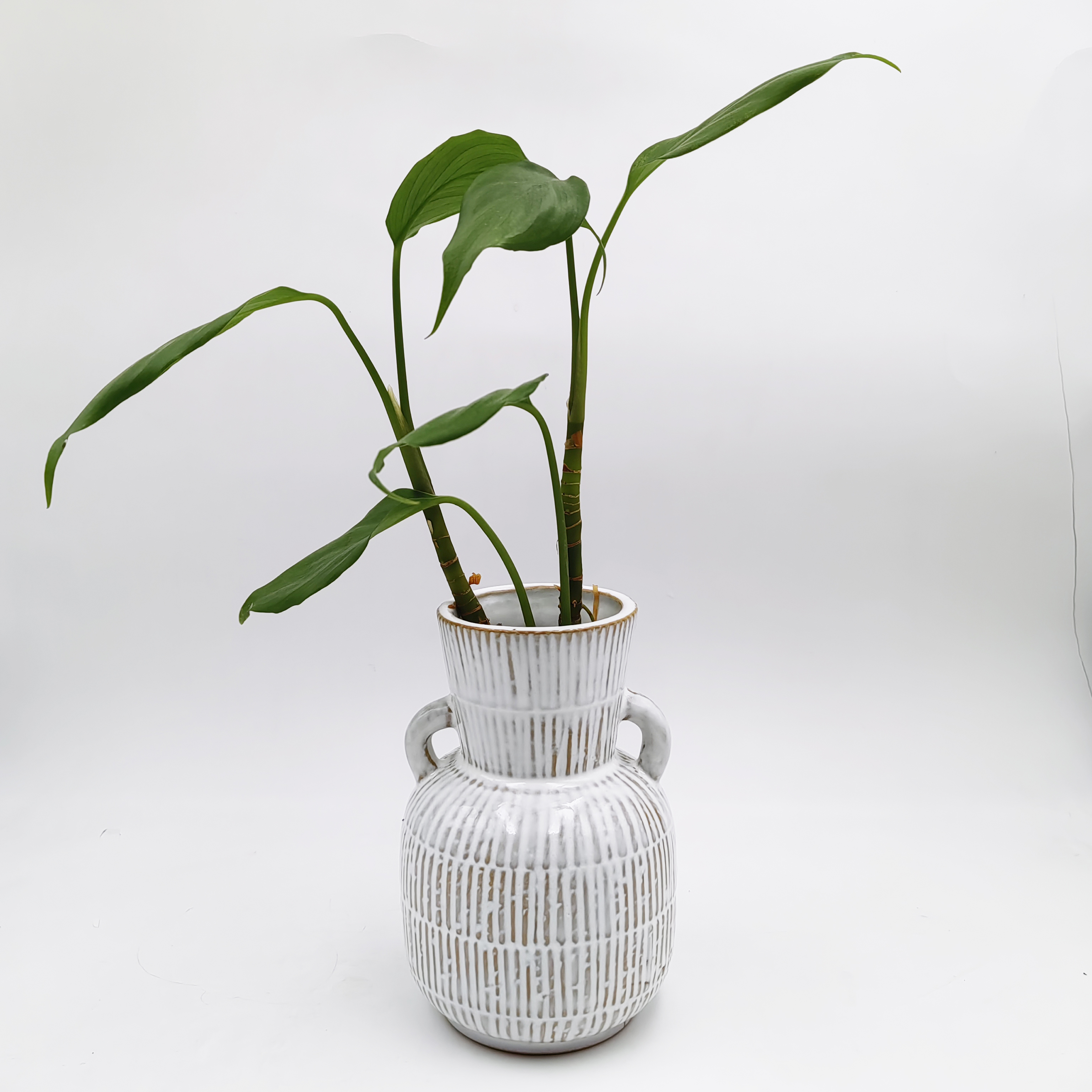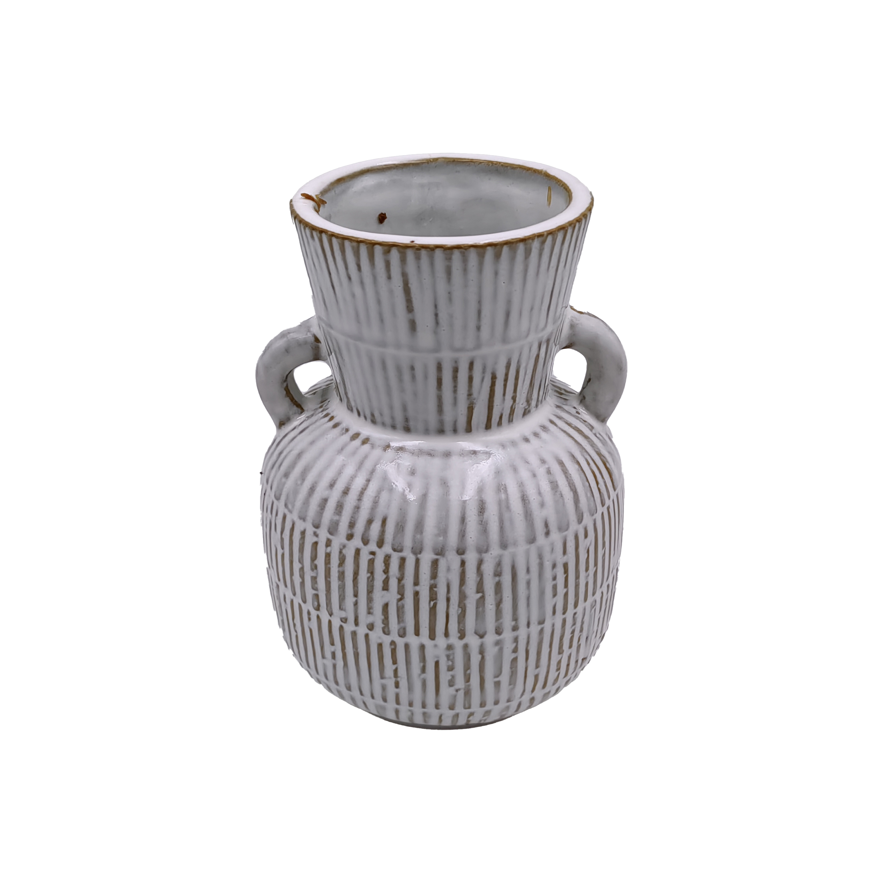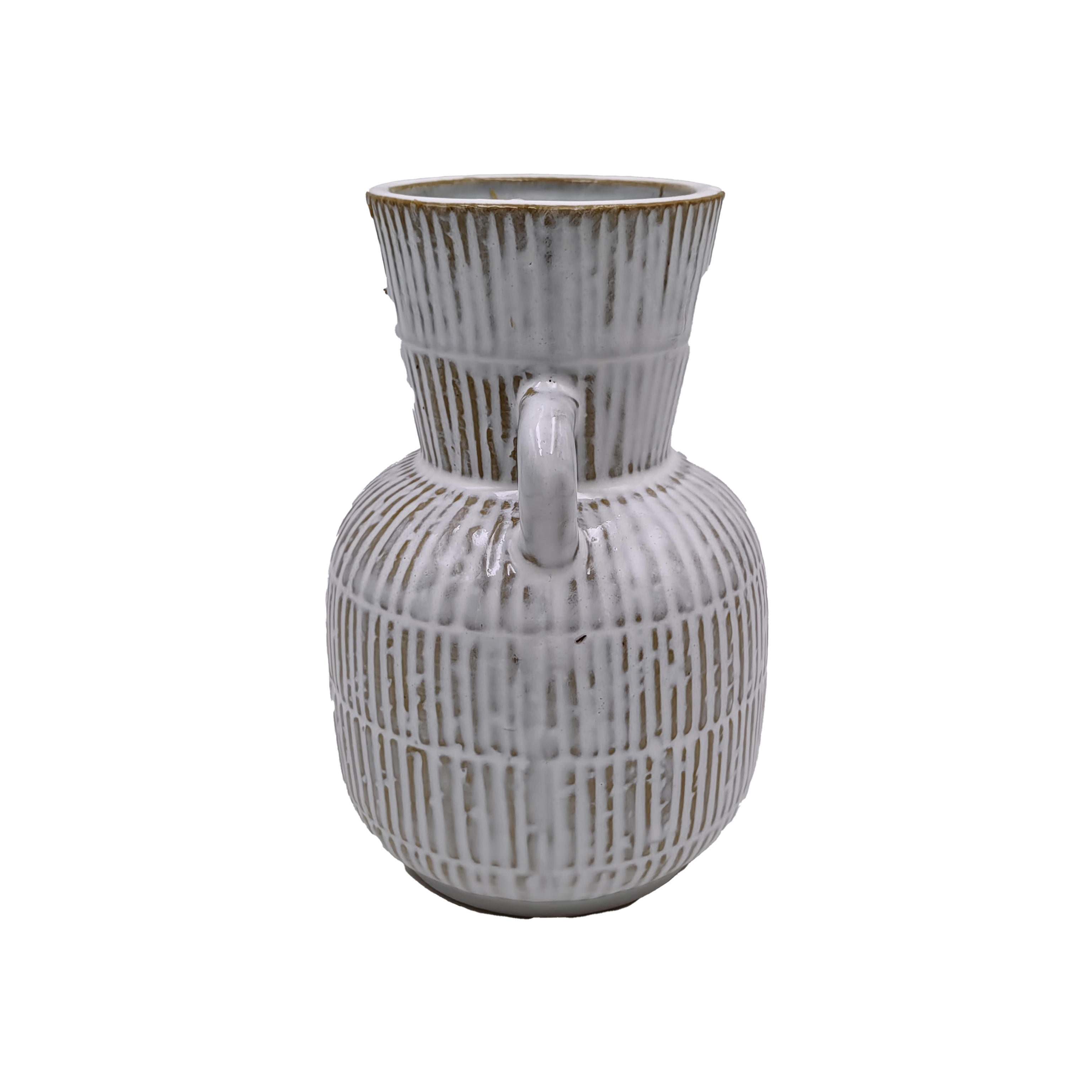 White Textured Ceramic Vase with Double Handles | Tall Rustic Boho Pottery Flower Vase for Indoor Decor | Striped Handmade Floor Vase for Plants and Greenery Display