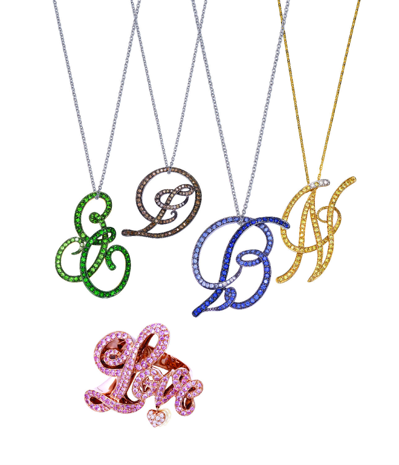 Pendant “E” – 18K YG Diamond, Green Garnet Pendant