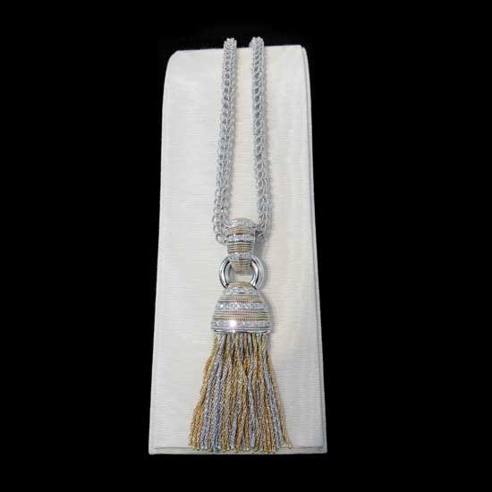 This necklace appeals to you with its unique and fashionable design. It features a sophisticated structure decorated with gold mixed silver tassels. This stylish necklace surely is a great addition to your jewelry addition.