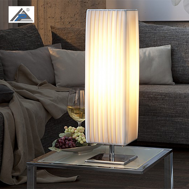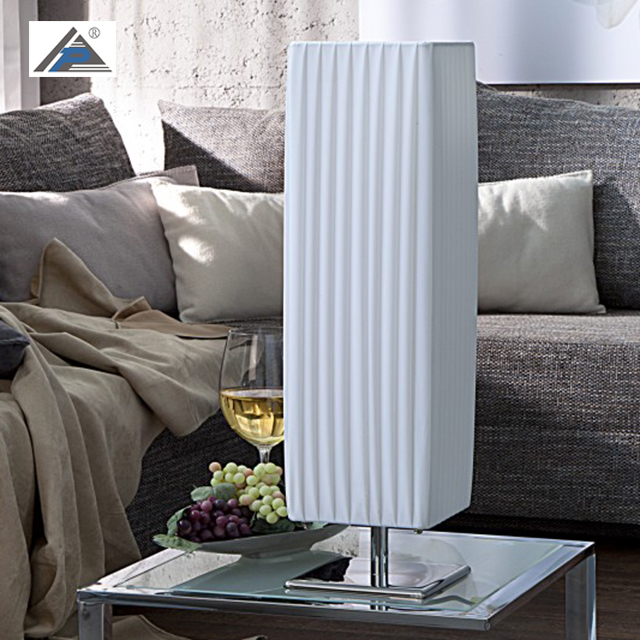 Pleated lampshade is handmade with PE material, which can be cleaned with wet cloth when it is dirty, and the light of course should be turned off. The stainless steel base not only adds weight to the table lamp for stability but also provides a designer touch to the white lampshade.
