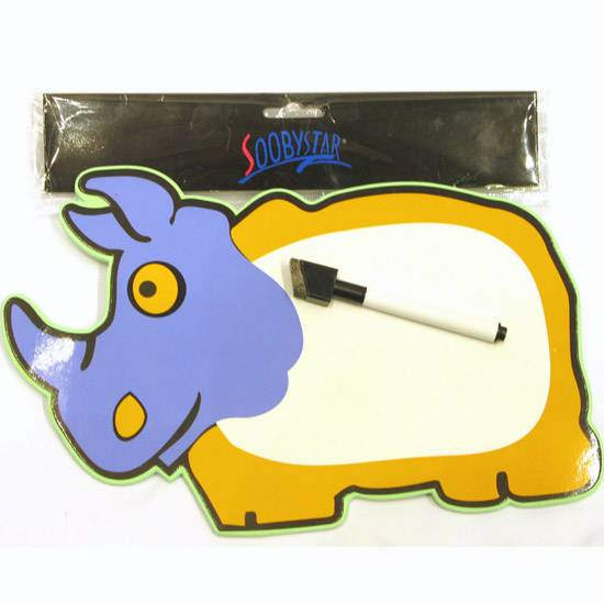 The whiteboard features a unique design with a rhino pattern. It comes with a writing pen and eraser at the end. This whiteboard writing set is ideal for office and home use.