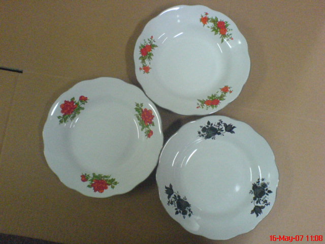 • Body of items is ceramic stoneware with a white glaze and decorated with on-glaze designs with 2pcs or 3pcs decals and platinum edge line.