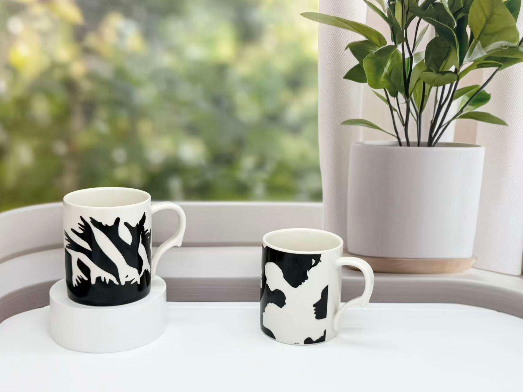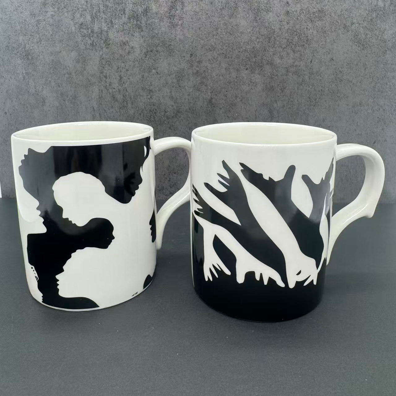 Wholesale Abstract design ceramic coffee tea mug /Black and white color pattern for customization