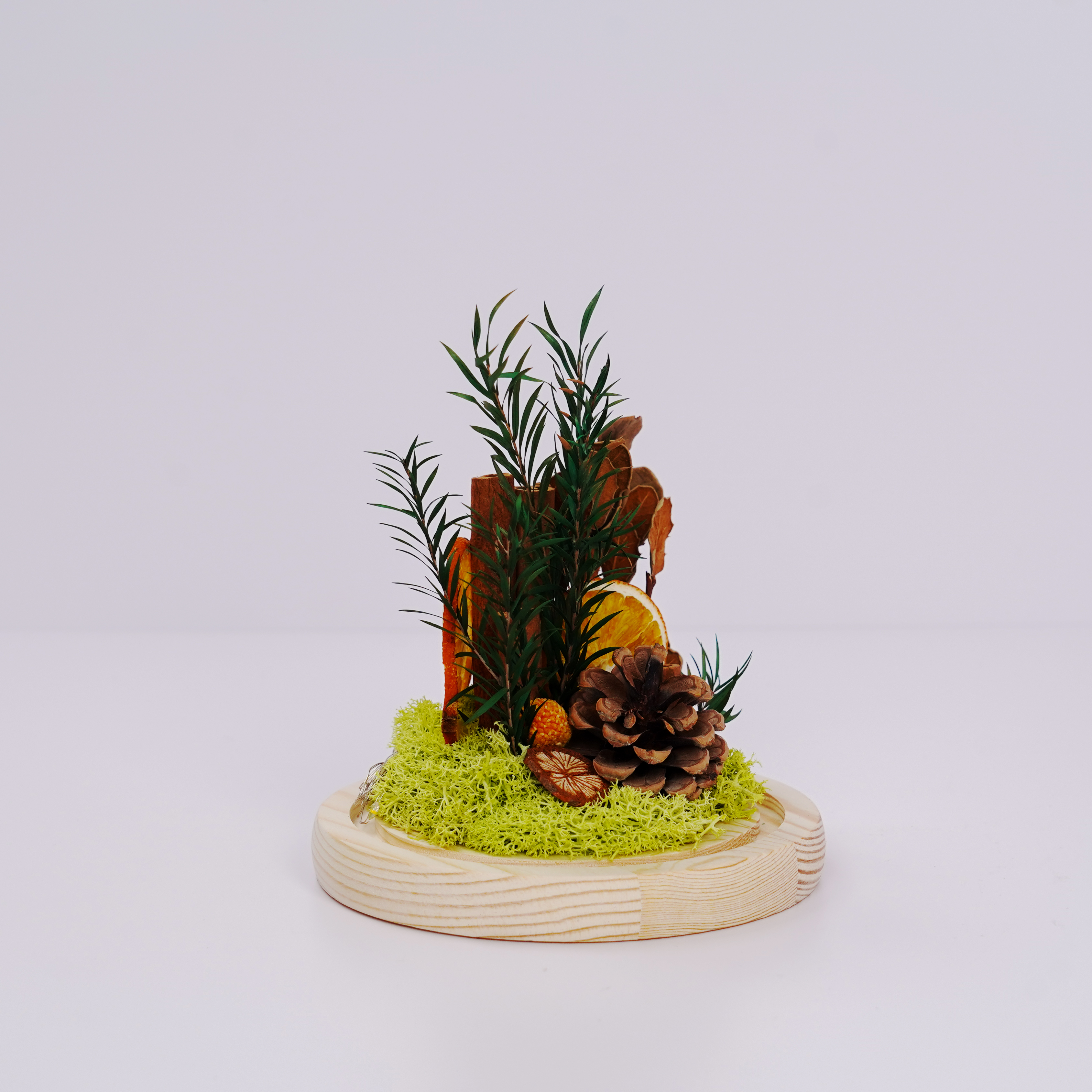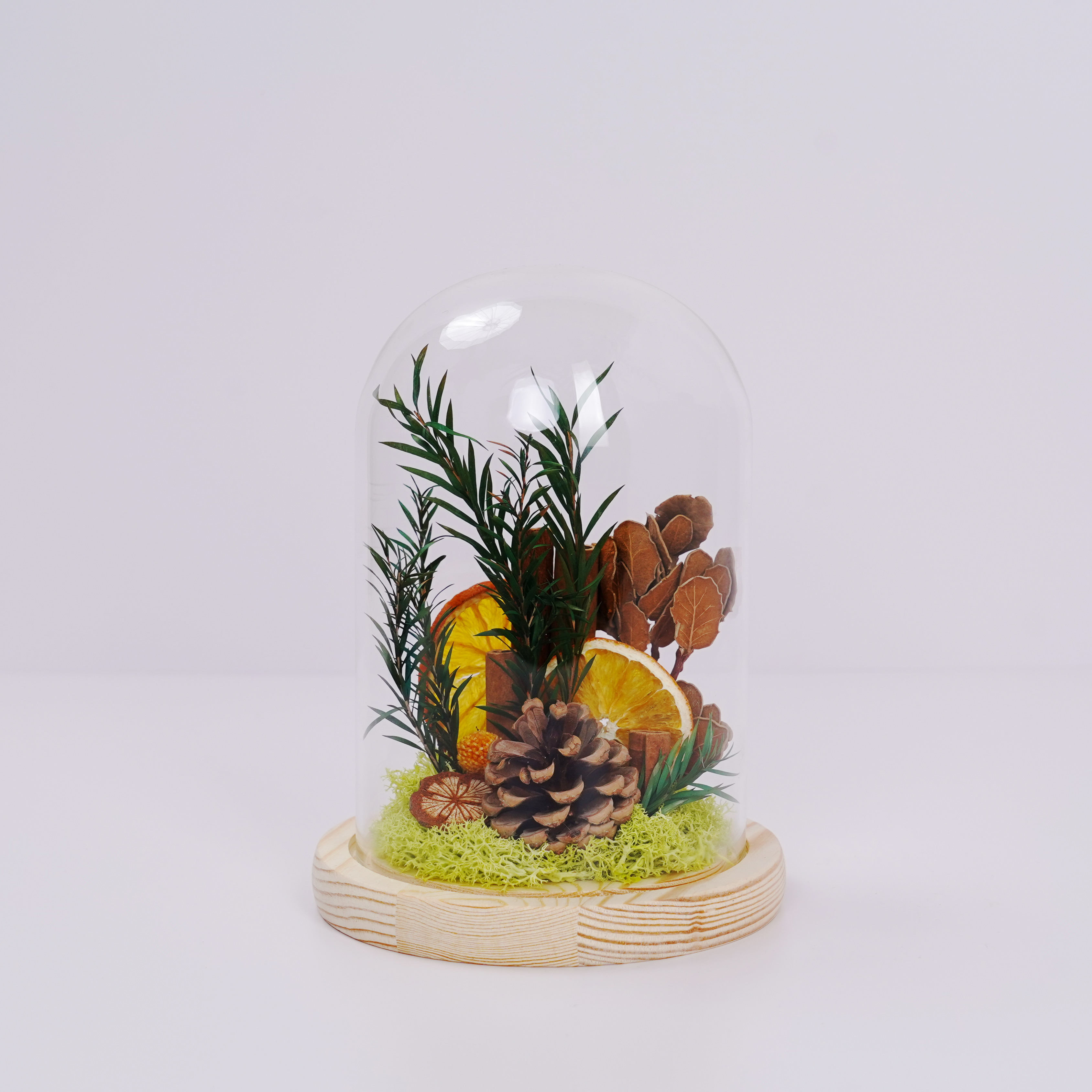 * dried flowers in glass dome