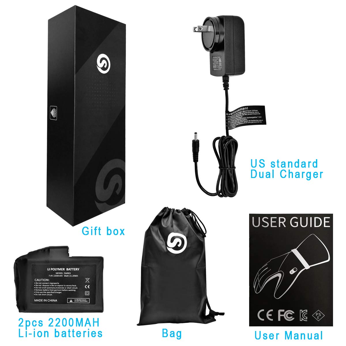 2 * 7.4V/2200 mAh Polymer Lithium Rechargeable Batteries.