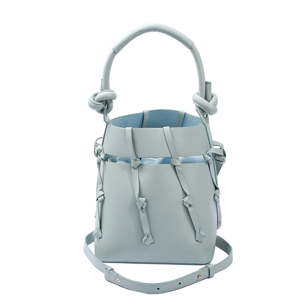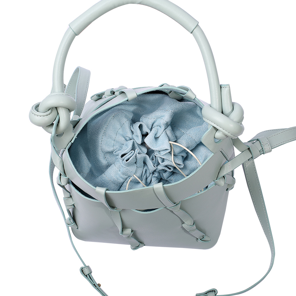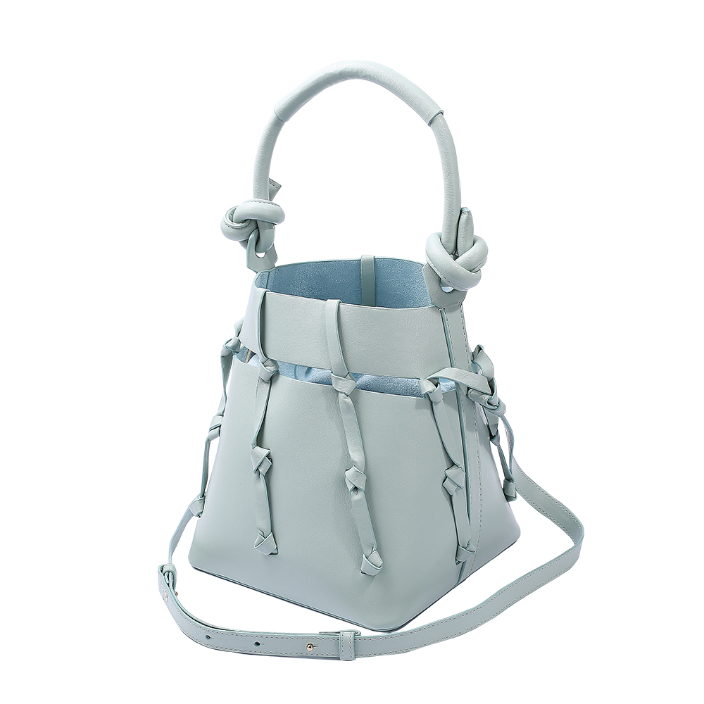 Wholesale Mini Pu Leather Ladies Shoulder Handbags Women Fashion String Knotted Braided Bucket Bag