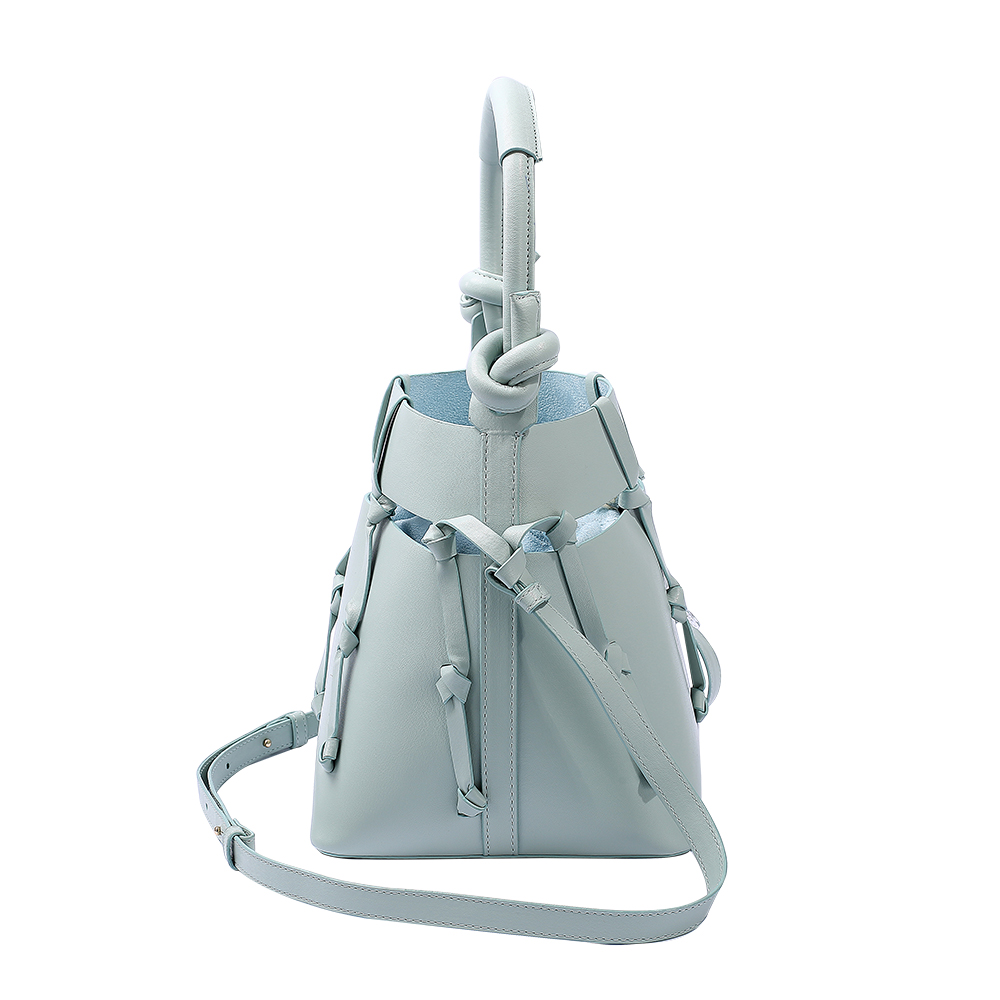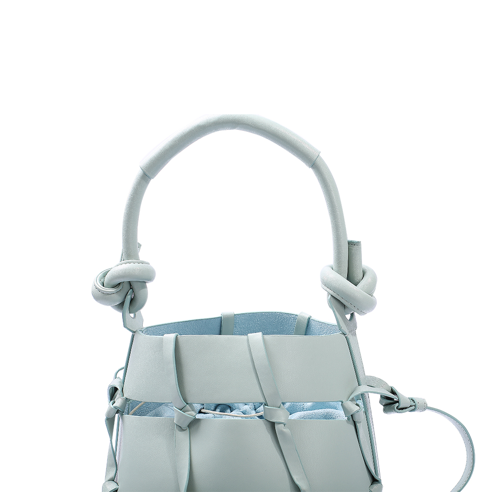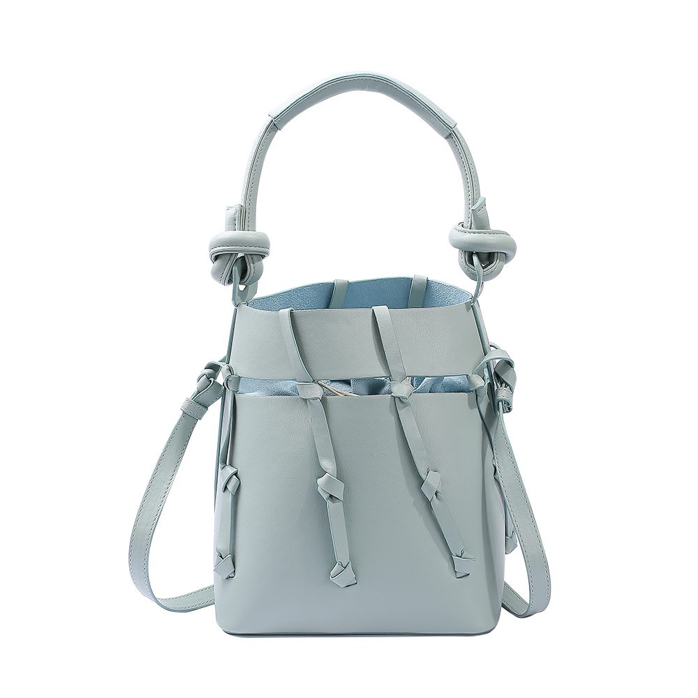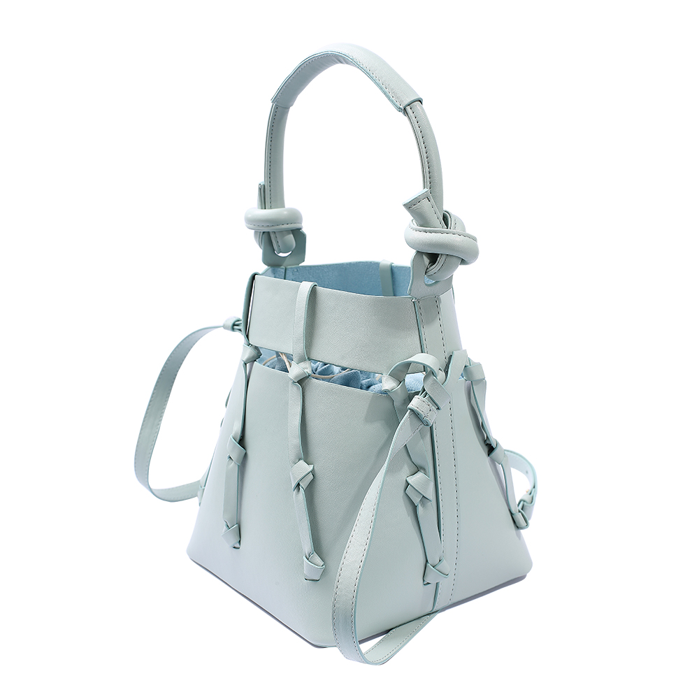 Wholesale Mini Pu Leather Ladies Shoulder Handbags Women Fashion String Knotted Braided Bucket Bag