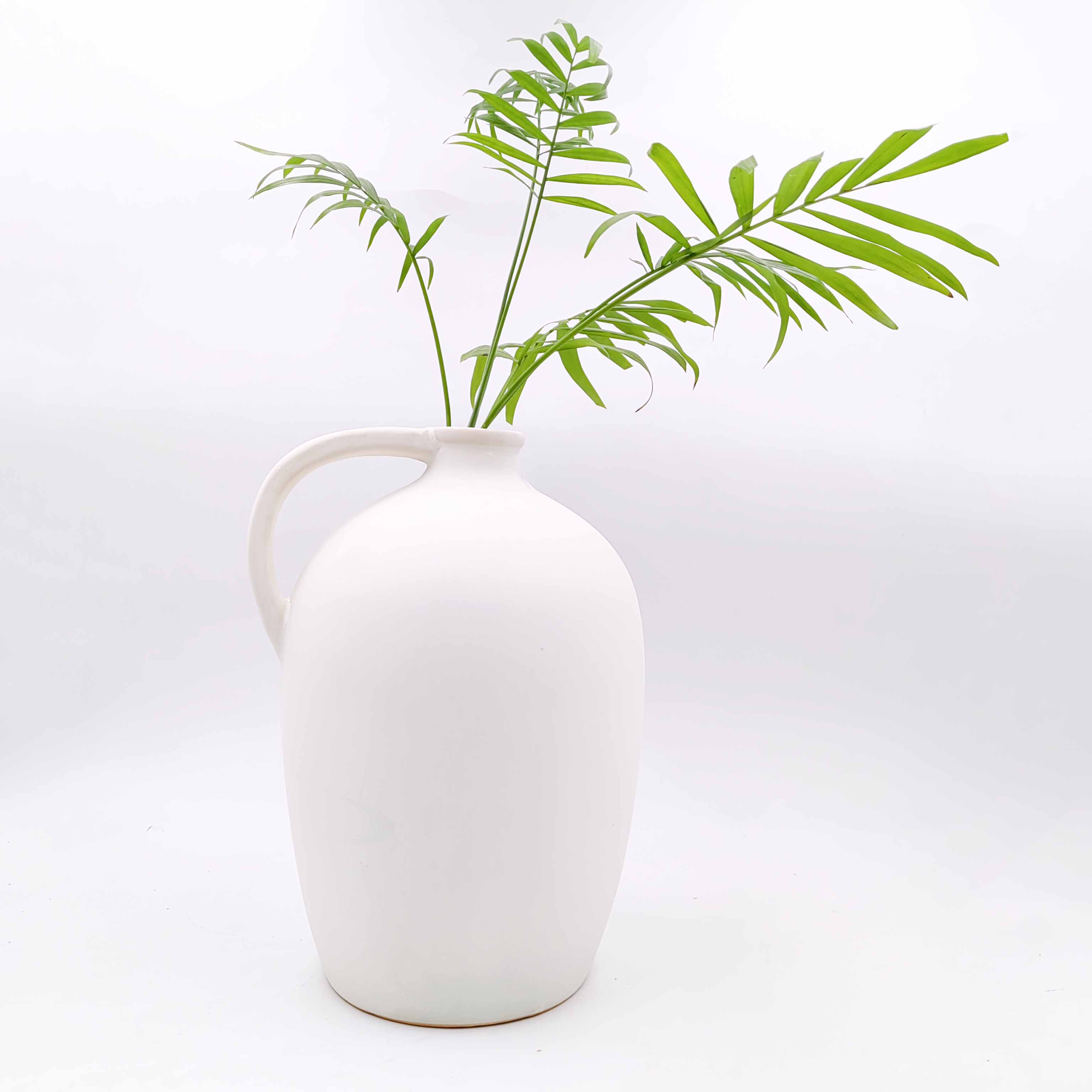 Wholesale Nordic Matte White Ceramic Vase with Handle | Home Decoration Flower Pot