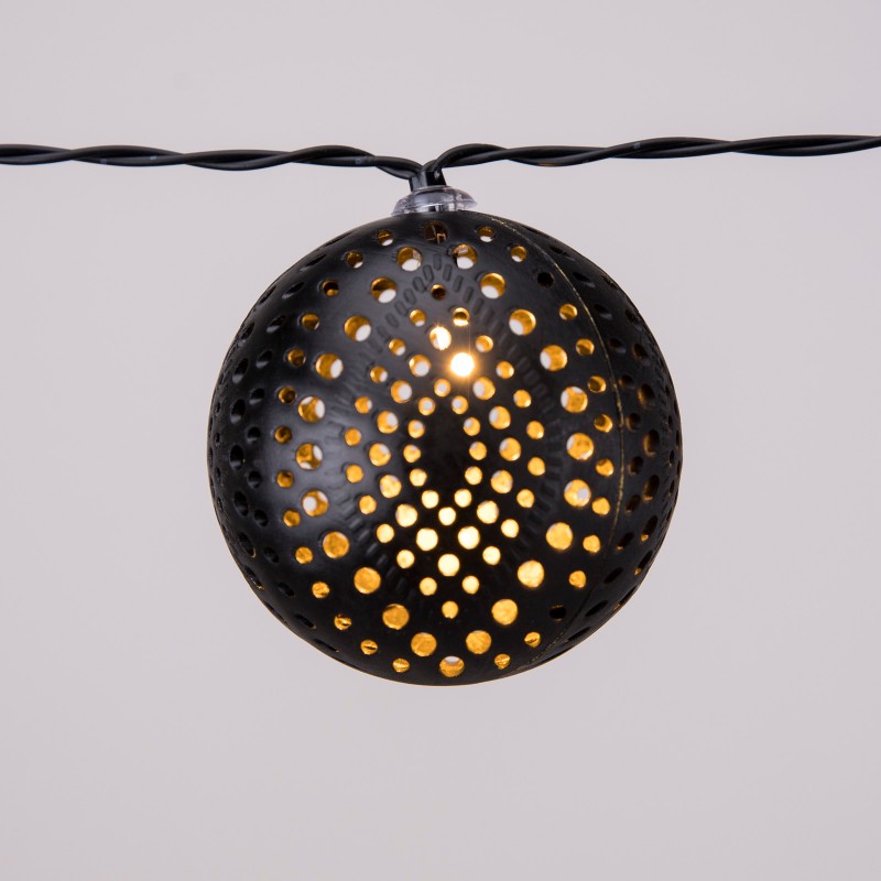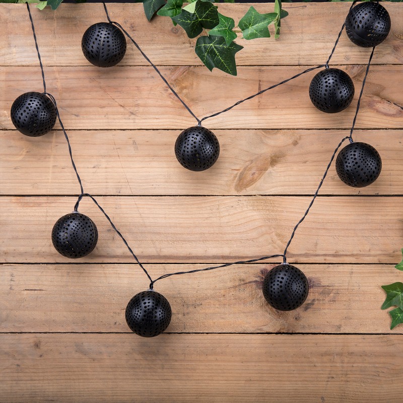 1. The black plastic decors., size Dia. 65mm with warm white LED inside, add an inviting ambiance to your casual outdoor family-time or entertaining guests with these solar powered globe string lights.
