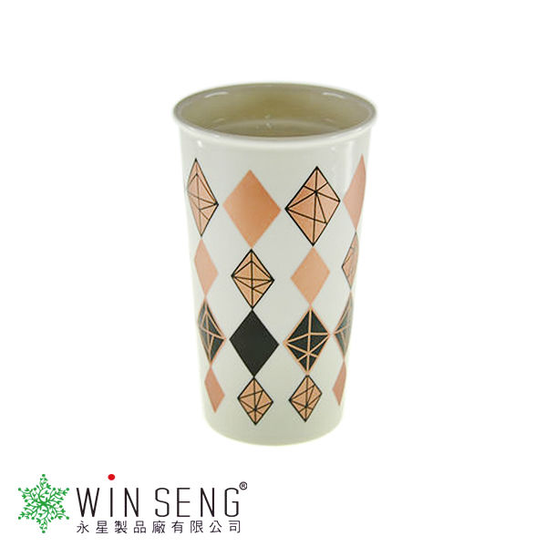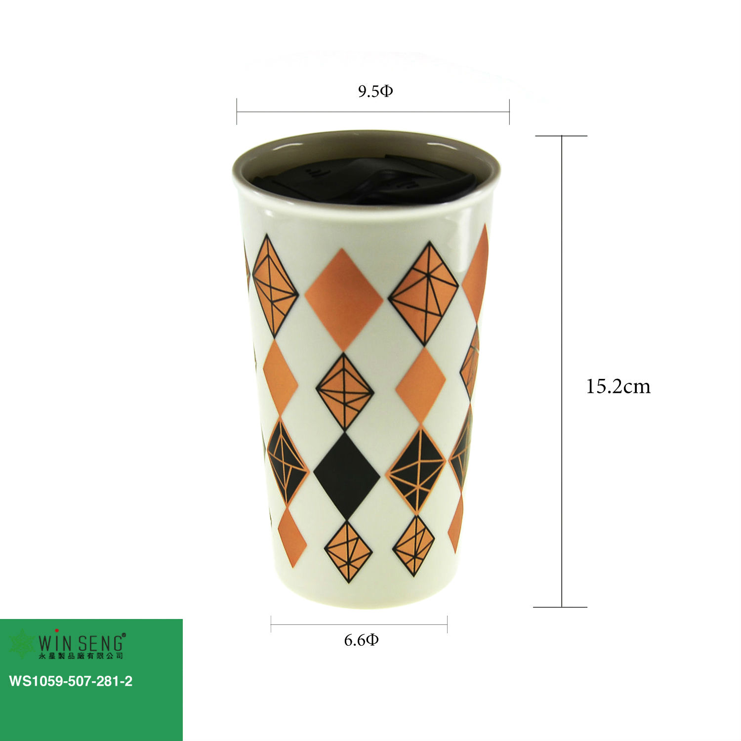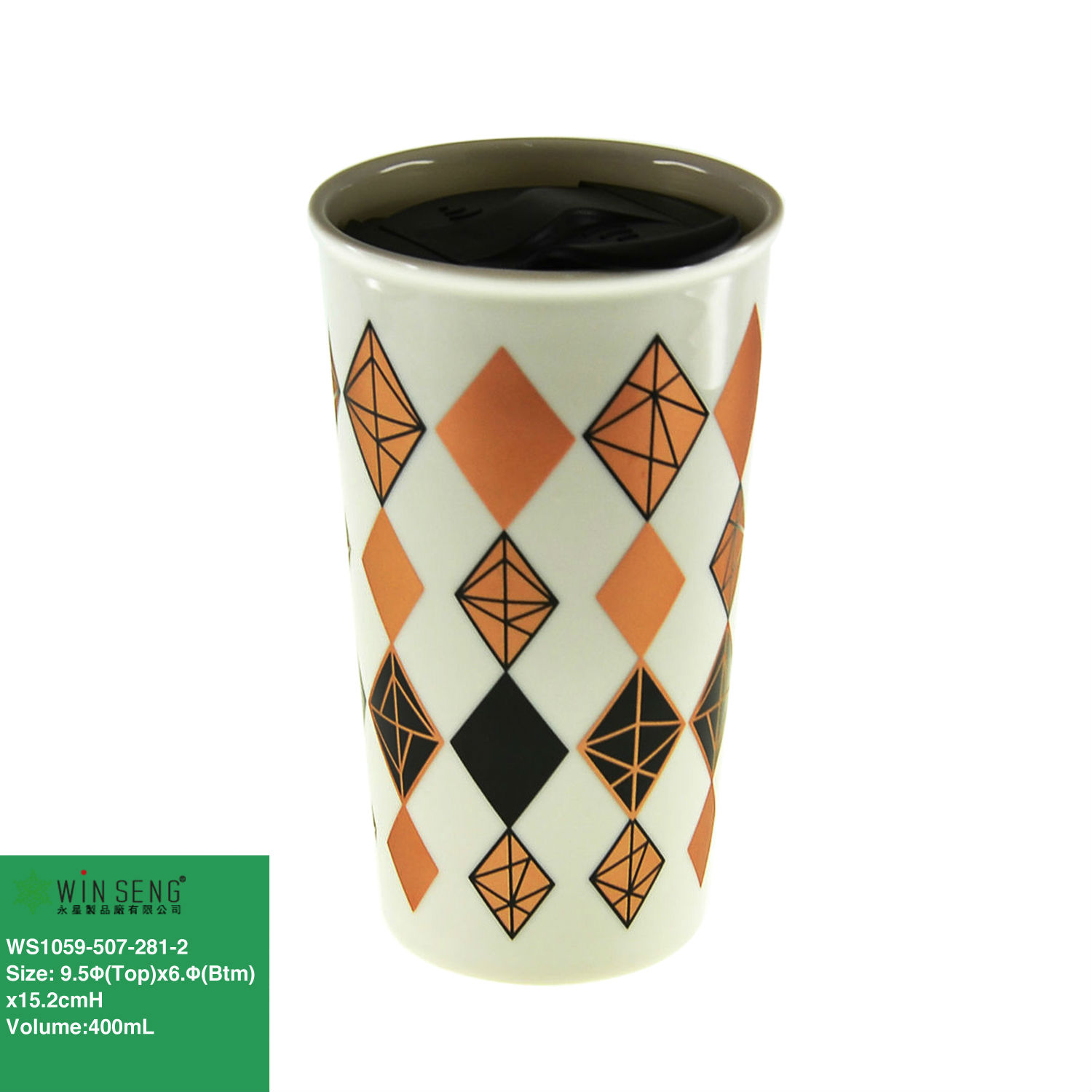 Wholesale Porcelain Double Wall Decal Mug with Plastic Lid