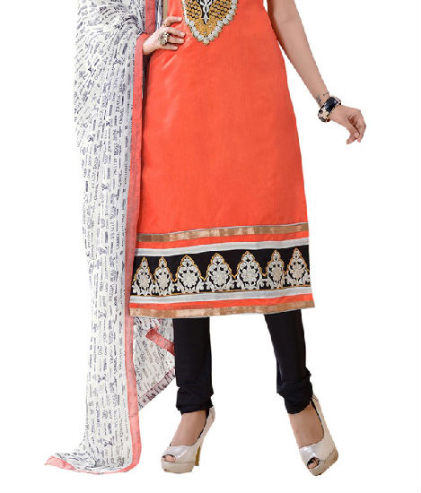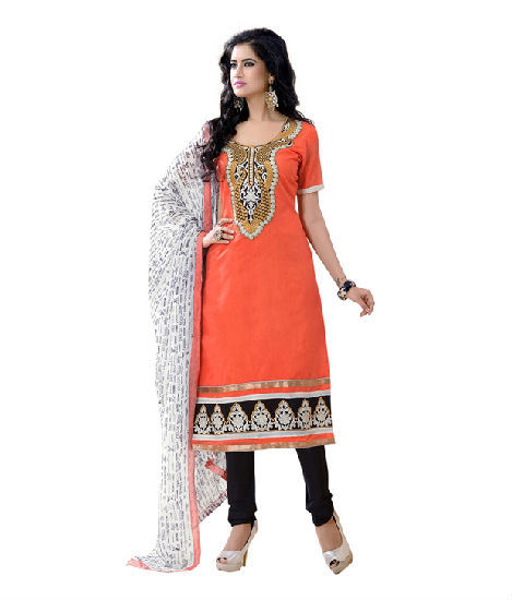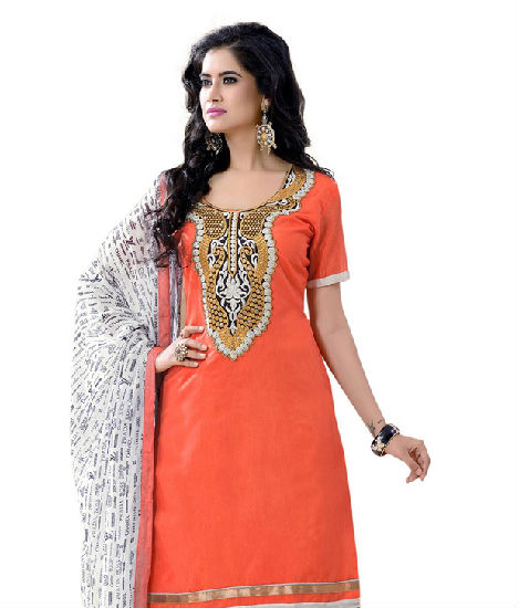 Fabdeal Solid Orange Chanderi Dressmaterial
