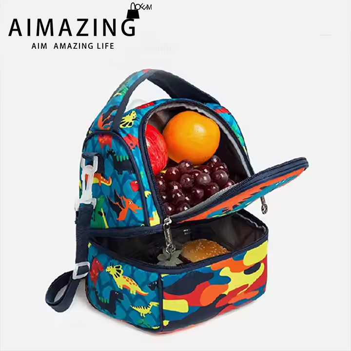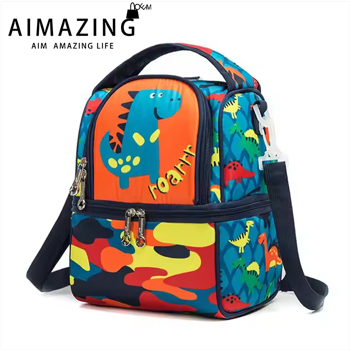 Eye-Catching Appearance: Our Aimazing kids lunch backpack showcases a lively and colorful dinosaur pattern that instantly catches the attention of children. The vibrant colors and cute dinosaur motifs make it not only a functional kids bag but also a fashionable accessory that kids will be excited to carry to school, picnics, or any outdoor activities. It's sure to make them stand out among their peers and add a touch of fun to their daily routine.