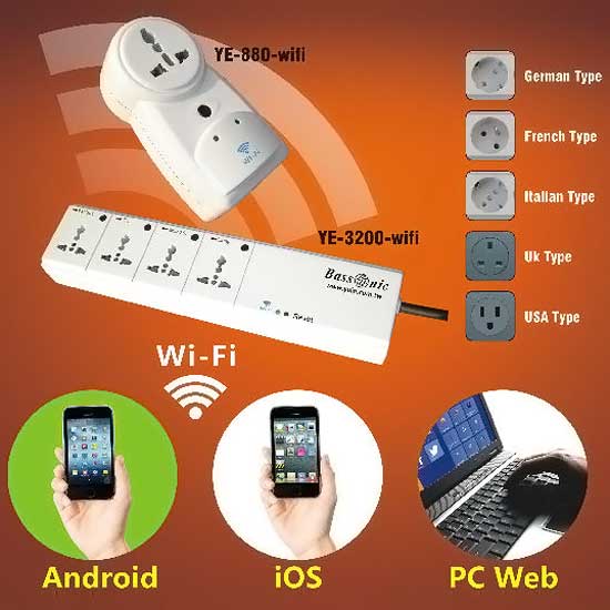 This Wi-Fi remote control socket allows you to turn on and off the power supply of your devices from a distance. You can have wireless access to the socket with your iOS apps, Android apps or through the internet. The adaptors are available for use in five major countries.