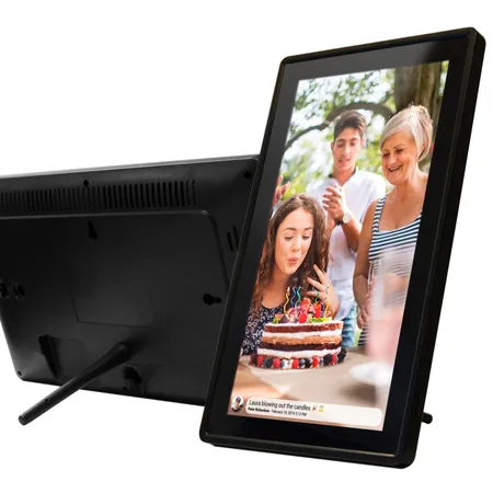 11.6 inch WiFi digital photo frame, black color, 8GB EMMC(16GB optional), external SD card slot(support 32GB SD card), can 1920x1080 IPS display, with touch panel, receive pictures and small videos. Accessory: adapter, user manual, bracket, screw