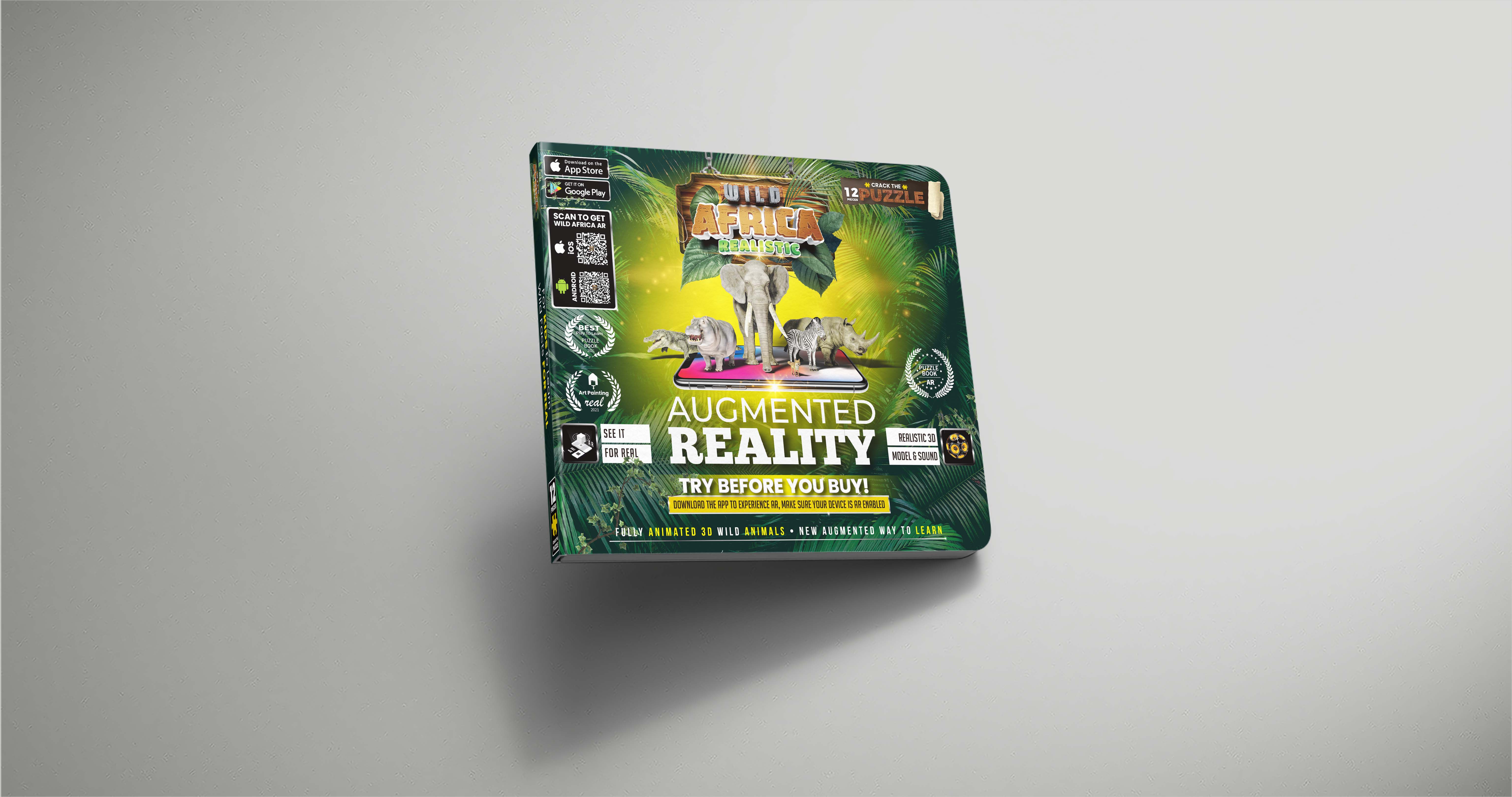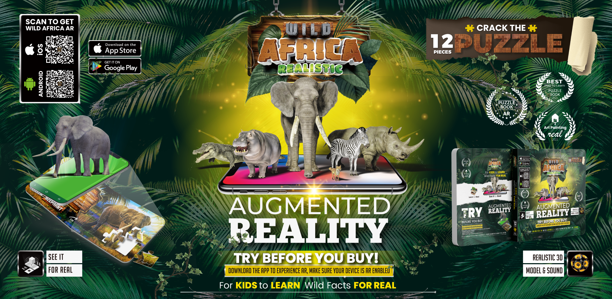 The Wild Africa AR puzzle book is an edutainment book tailored for kids. By using the app of the book, kids would be able to crack the jigsaw puzzles and then further interact with the wild African animals in the real world to learn the wild facts.
