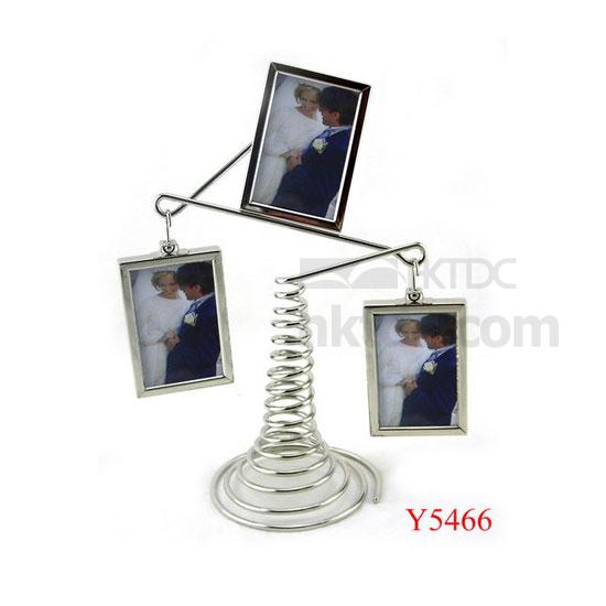 Photographed is a windmill photo frame that can hold 3 photo frames. The polished metal construction is sturdy and stylish. The spring-cone trunk stands firm on flat surfaces.This item makes a funny home decorative item