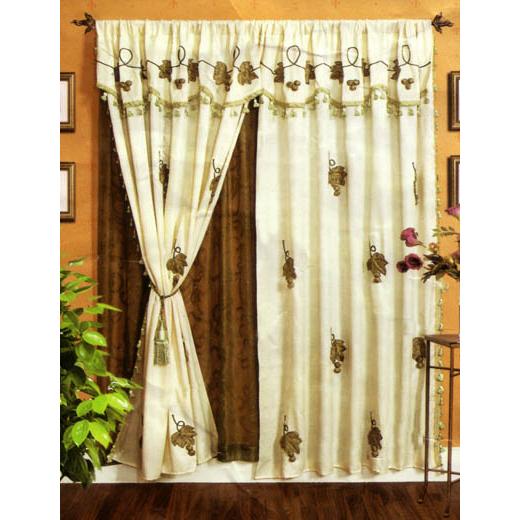 Elengant and fine designed bone color window curtain with large maple pattern adds style to your home decoration. Curtain tiebacks showcase a classic high class design.