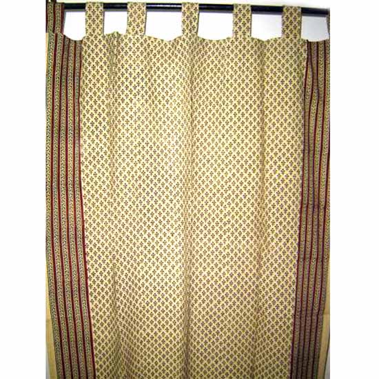 Featured is a window curtain that can also be used as noren. The pure cotton composition ensures persistent colors and good durability. The patterns are printed with hand-block and screen printing technologies.