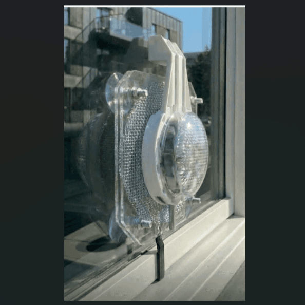 A transparent, low-profile, manual beam-steering window antenna that adheres directly to glass. Users adjust azimuth/elevation toward the serving cell or a cleaner reflected path to maximize SINR. The EM-wave is optimized for through-glass coupling, reducing reflection/absorption at mid-band. A description of antenna installation for radiation angle tuning.