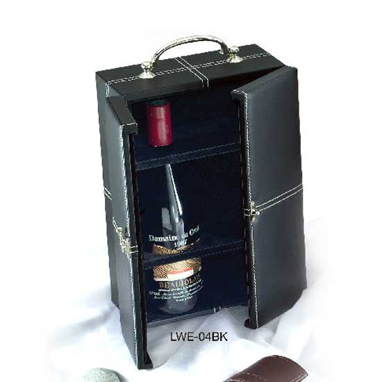 This wine box is designed to keep your wine bottle in perfect condition. The leather-like surface presents an elegant touch. The user-friendly lock mechanism and top handle complete this functional wine box.